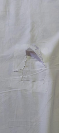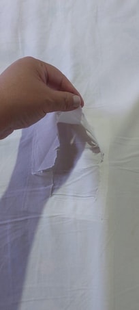 O lençol da cama de casal estava com um remendo grande, q para descosturar conosco seria fácil.