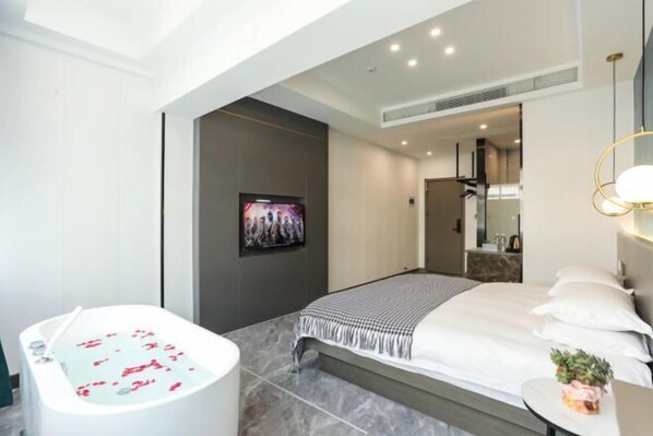 Street-View Double Bed Room With Tub (Latex Mattress + Central Air Conditioning + Down Comforter)