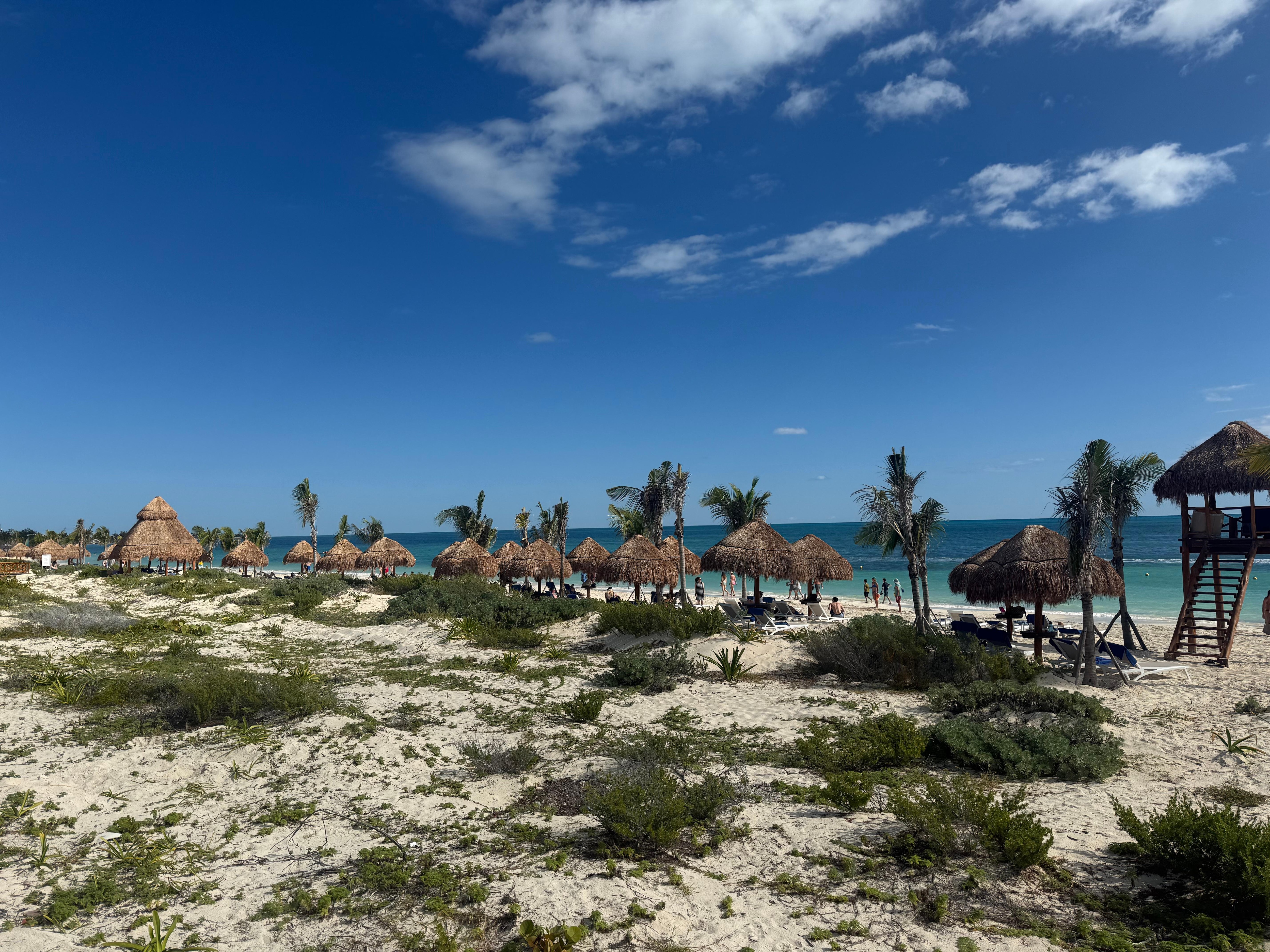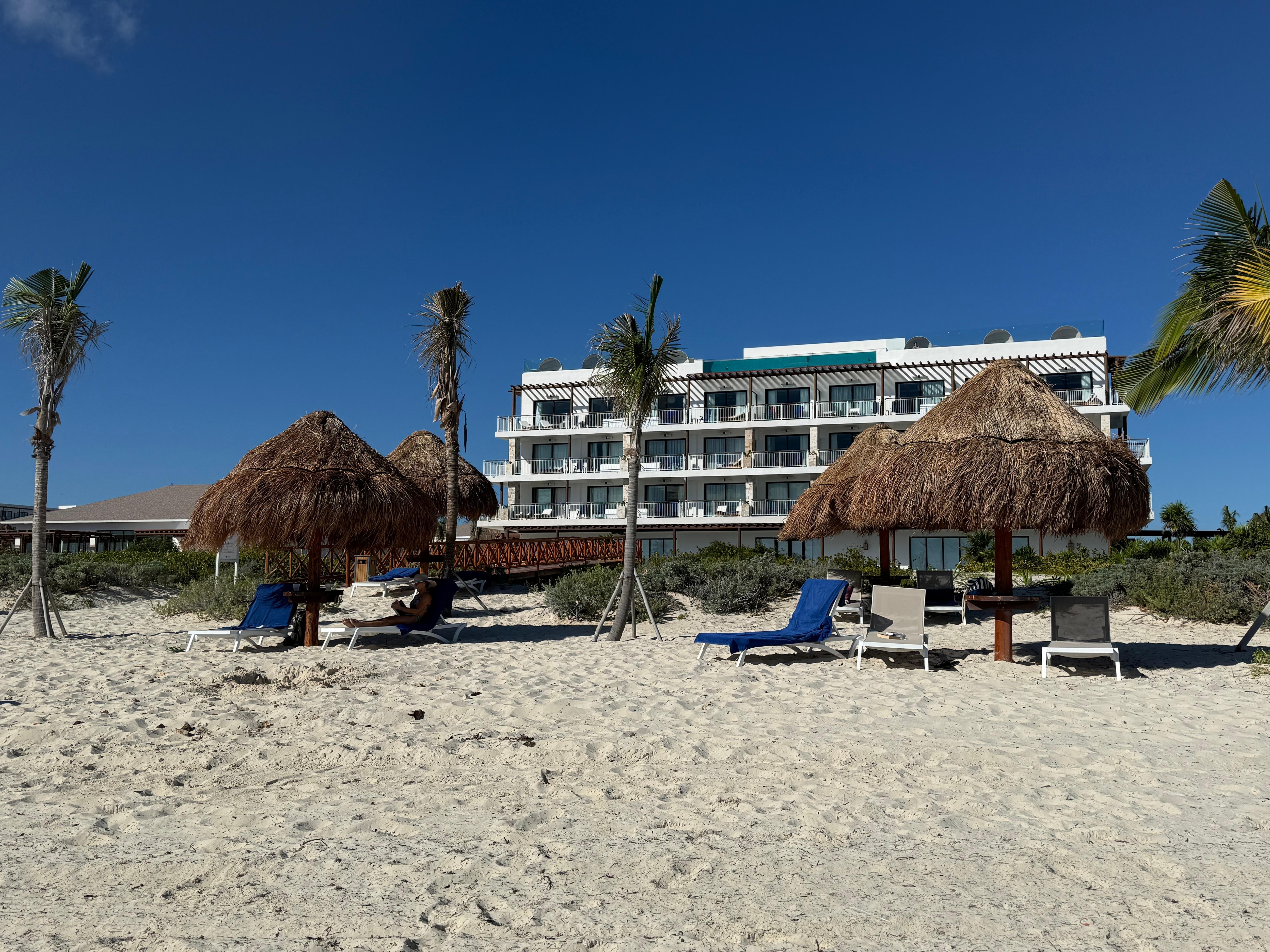 We recently stayed at this resort and overall had a pleasant experience. The property is very clean, quiet, and not crowded, which made it easy to relax. The beach itself is beautiful and well maintained. However, there are not nearly enough lounge chairs. If you arrive around 10 a.m., you’ll likely spend a good amount of time walking back and forth trying to find one. I understand the resort just opened on December 1st, but if you know how many rooms are booked, it seems reasonable to provide enough basic essentials for your guests. The Italian restaurant was clearly understaffed — it took about 20 minutes just to get water, and the fish we ordered was dry. This was disappointing, especially since it’s the only restaurant that requires reservations. The other restaurants were decent and more consistent. Our room was clean when we arrived, except for the shower floor, which we had to rinse ourselves. After the first night, we used the door hanger to skip housekeeping, but once we removed it the next day, no one came to clean — not that day, nor the next, until late at night. The spa was another letdown. A 60‑minute massage was $169, which would be fine if the spa felt special, but the space was very plain and lacked any warmth or coziness. I wouldn’t return to the spa based on this experience. On a positive note, booking a trip to Xcaret Park through the resort was very easy, everything went smoothly, and we enjoyed it a lot. Despite the issues, the resort is new, clean,